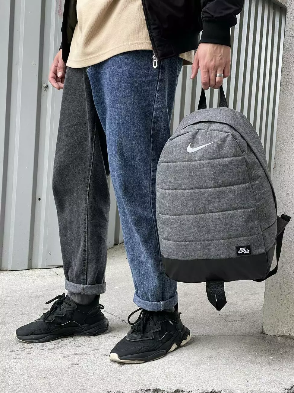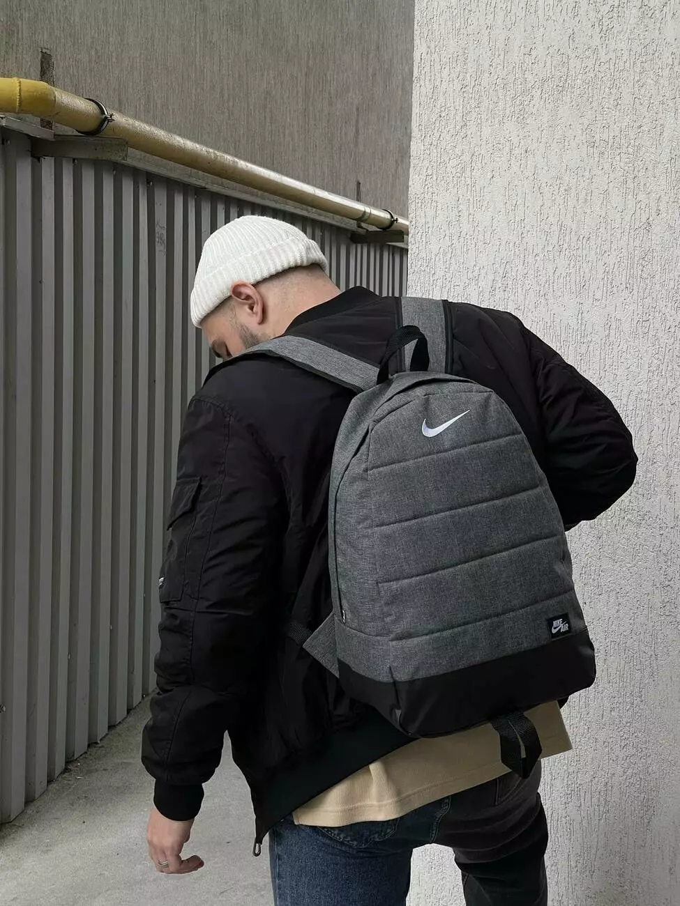 Рюкзак Матрас серый меланж Nike (белое лого)