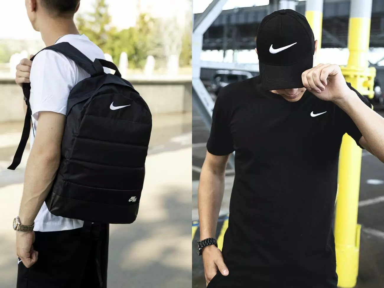 Рюкзак Матрас чорний + Кепка чорна Nike з білим лого
