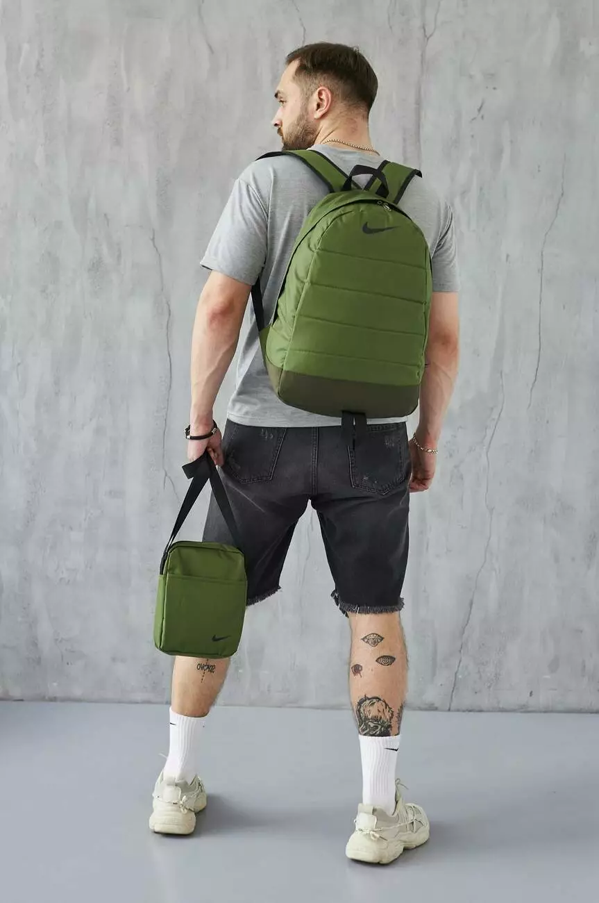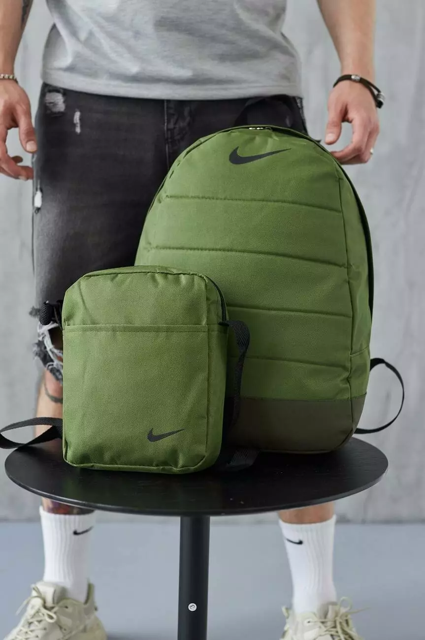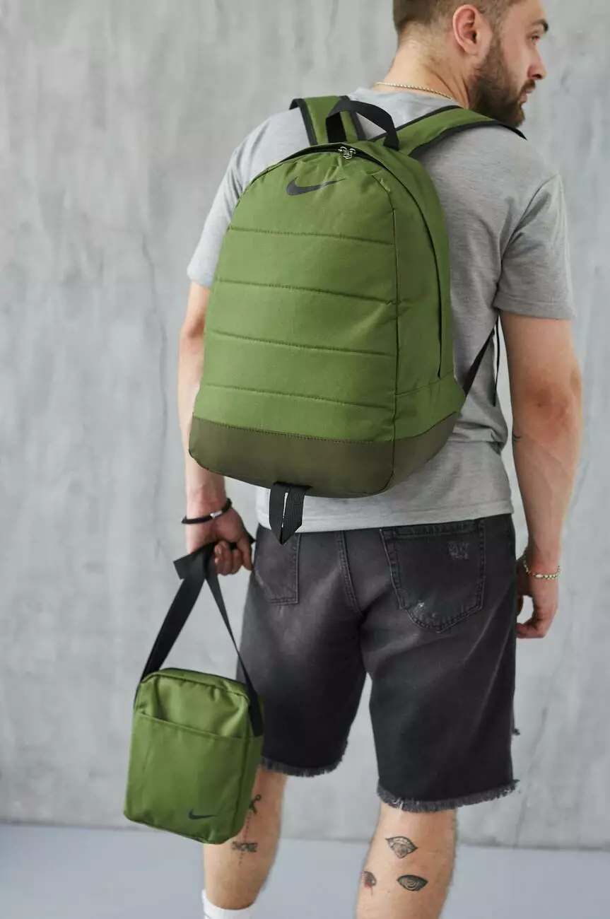 Рюкзак Матрас Nike хакі (чорне лого) + Барсетка Nike хакі (чорне лого)