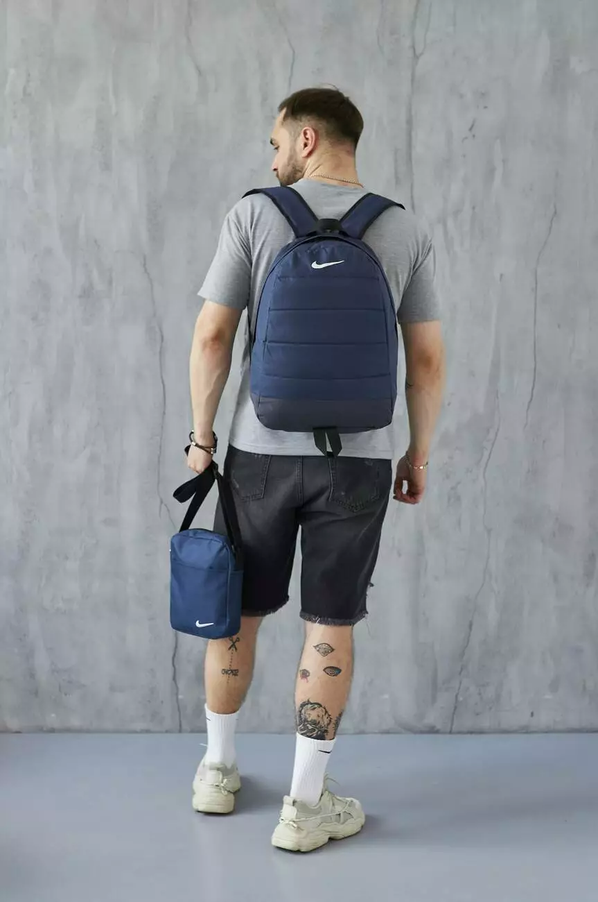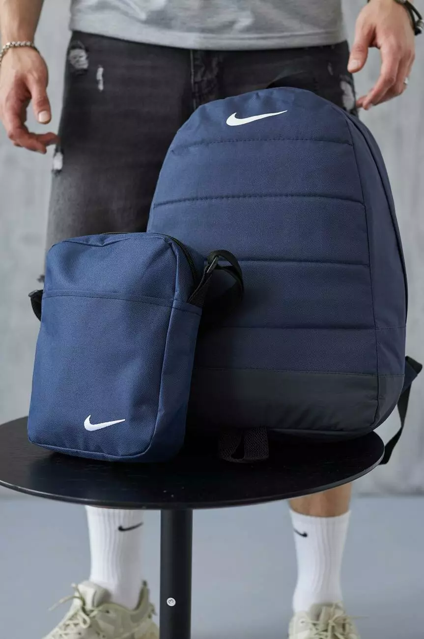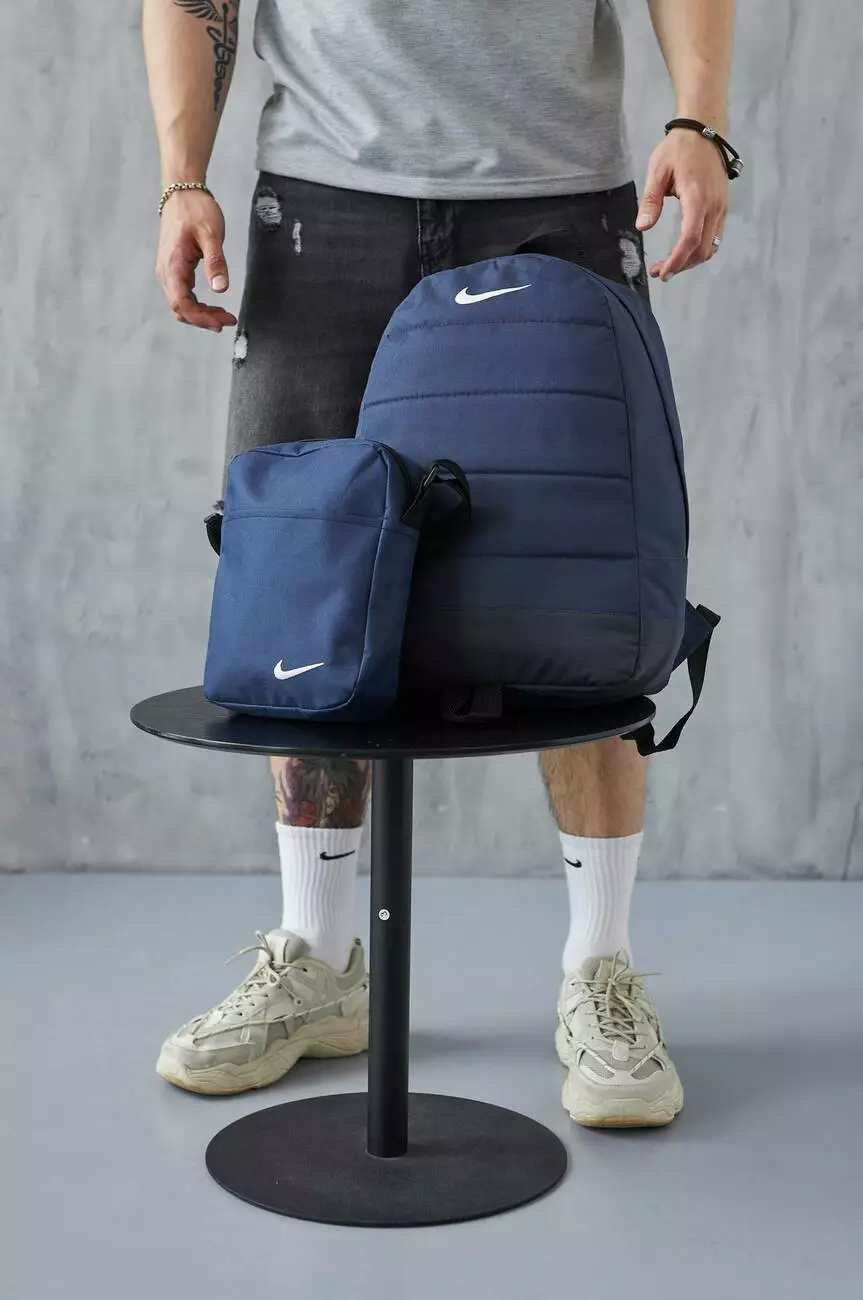 Рюкзак Матрас Nike синій (біле лого) + Барсетка Nike синя (біле лого)