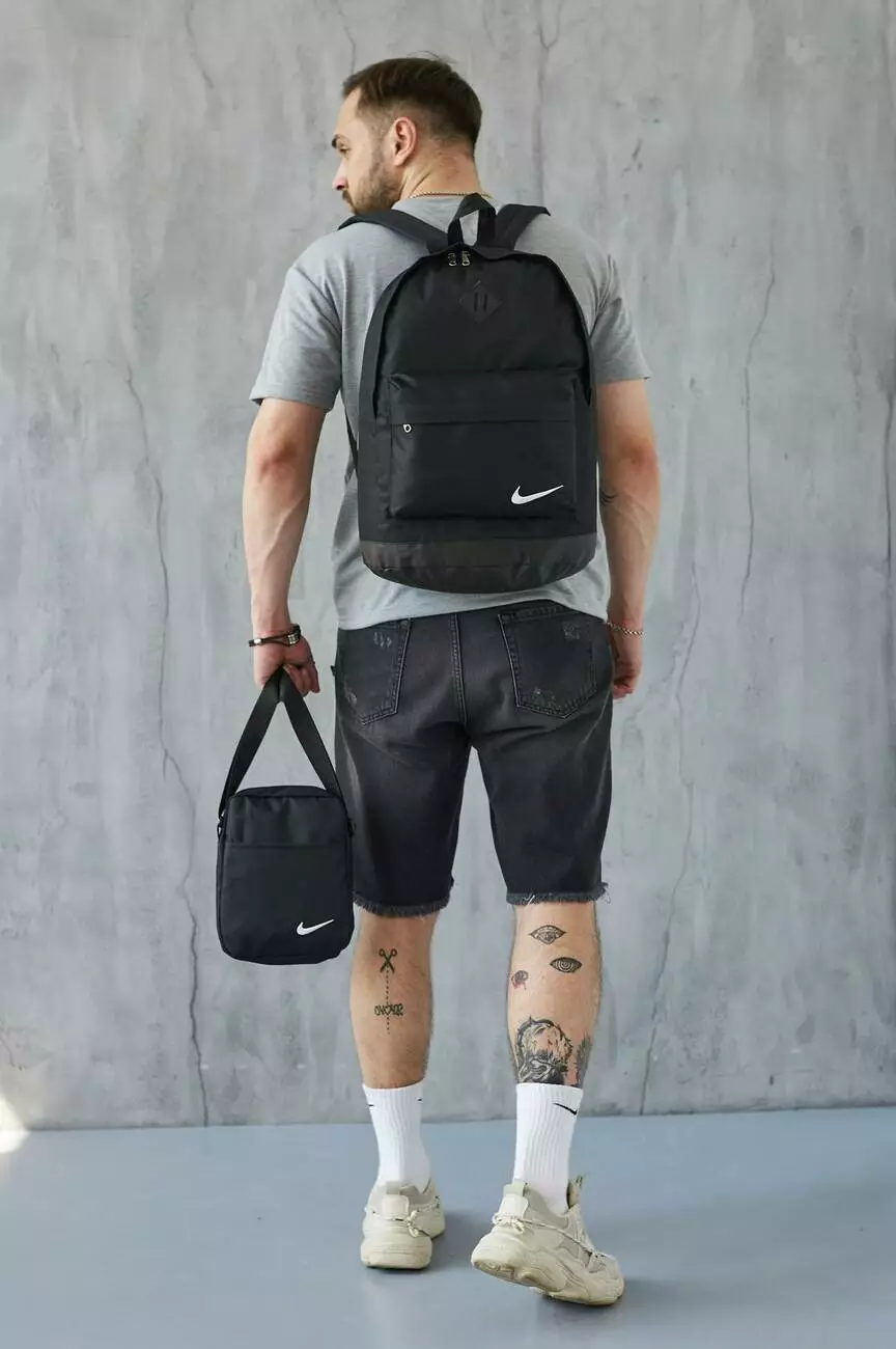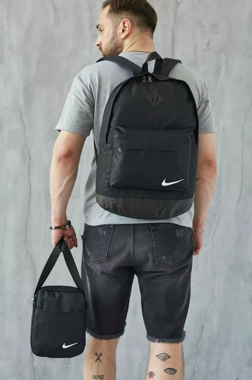 Рюкзак Шкіряне.дно чорний + Барсетка Nike чорна