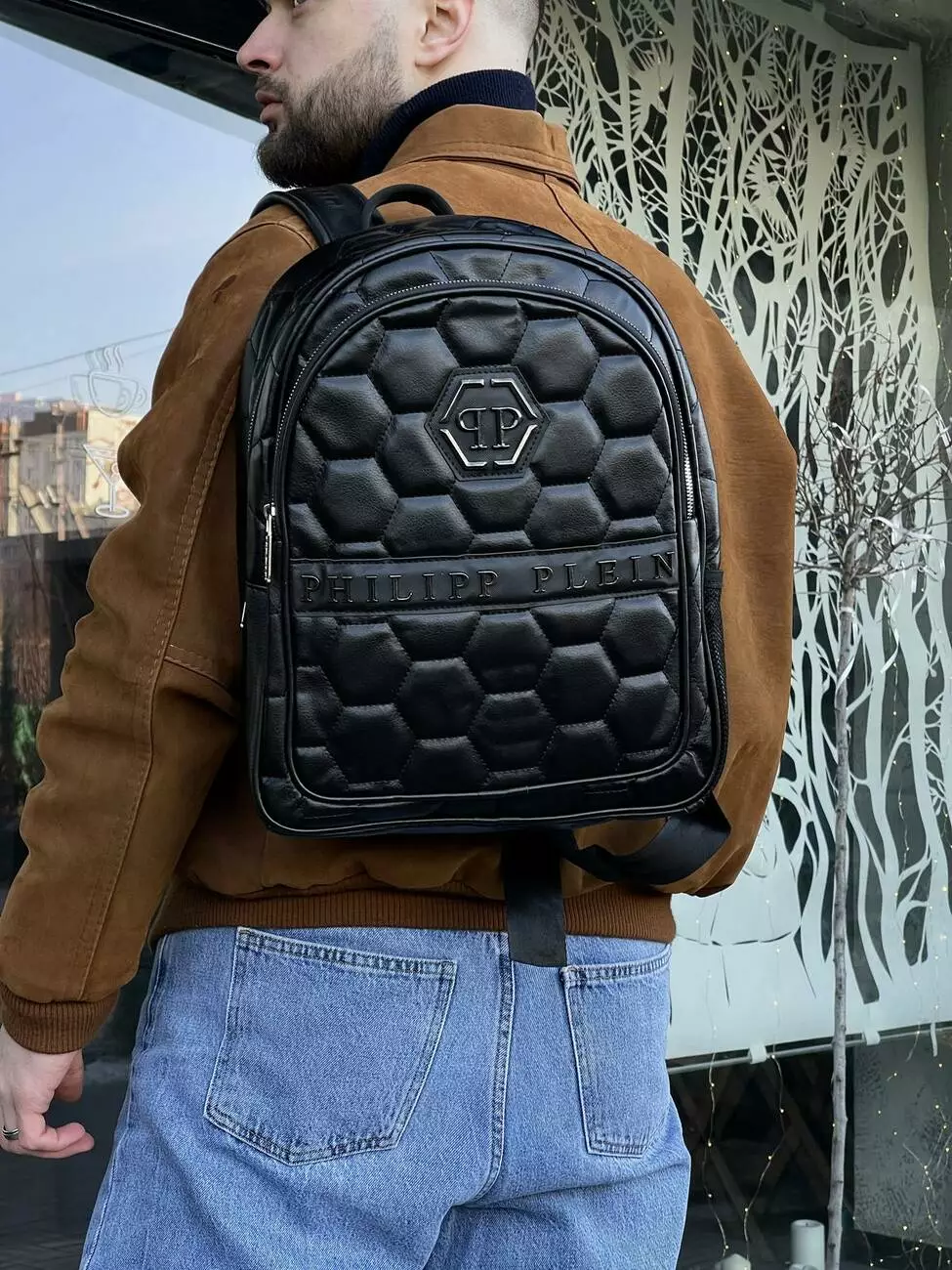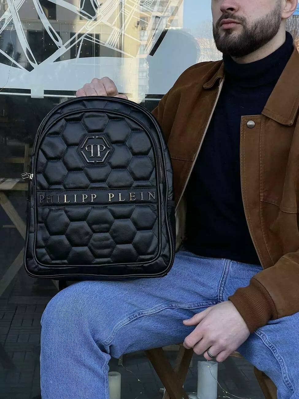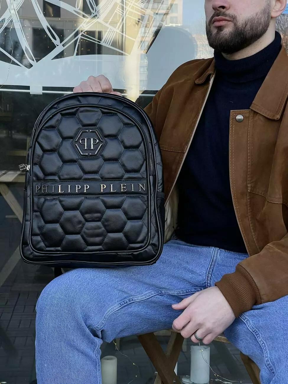 Рюкзак шкіряний чорна черепаха Philipp Plein