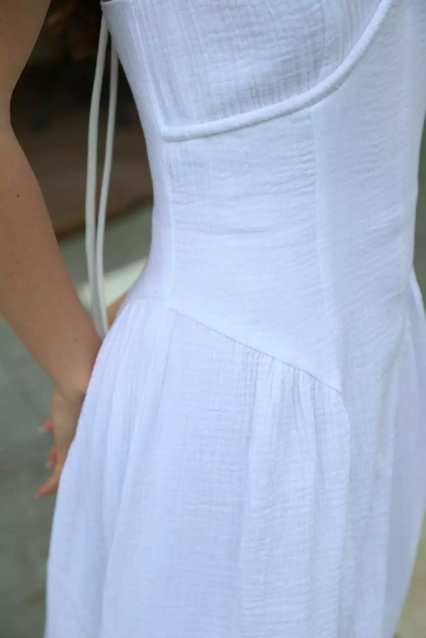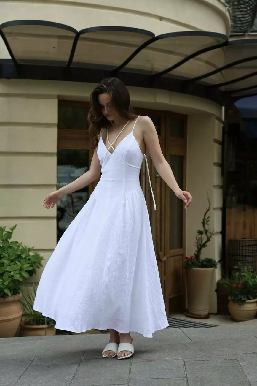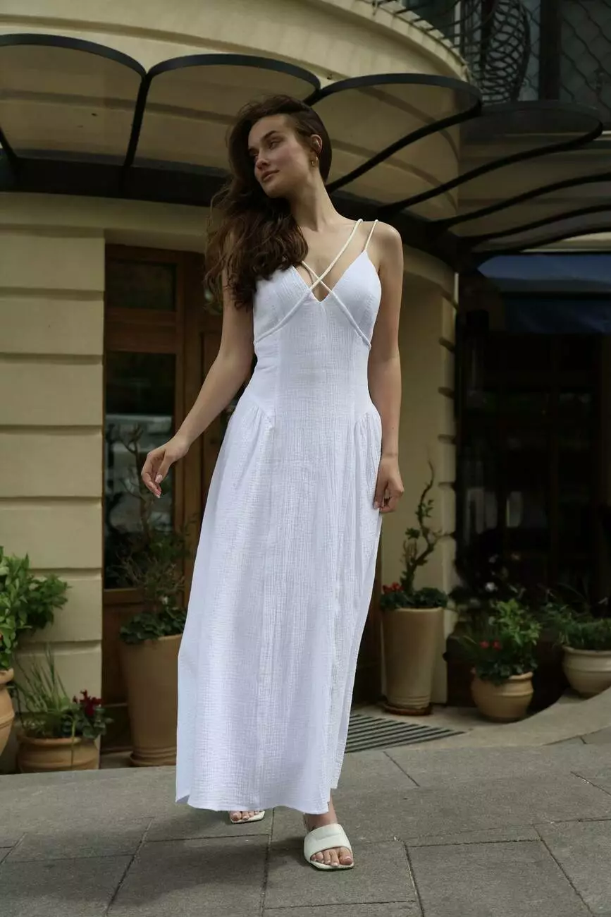 Цей витончений сарафан із натурального 100% бавовняного мусліну створений для справжньої свободи й комфорту у спекотні дні.