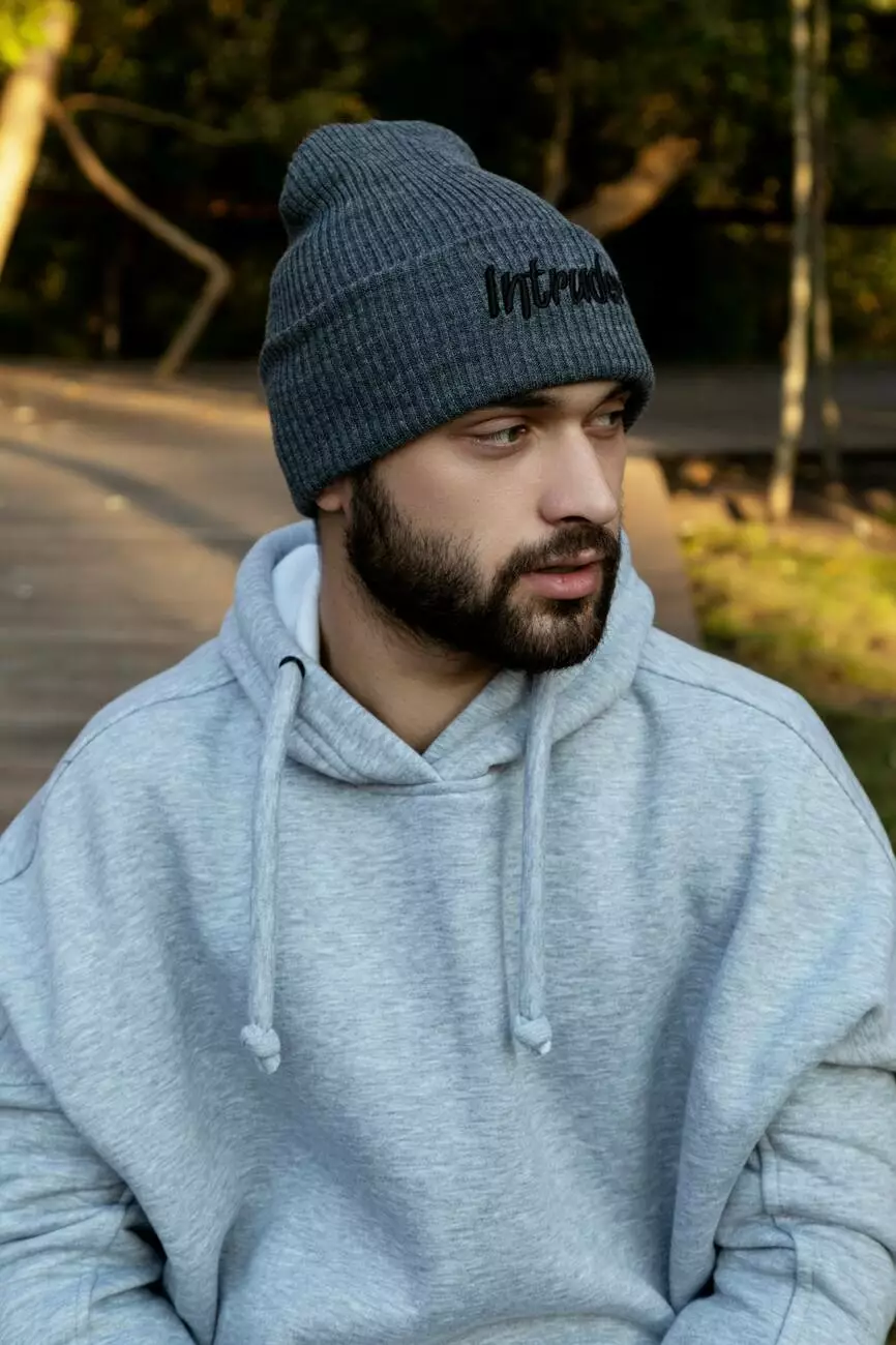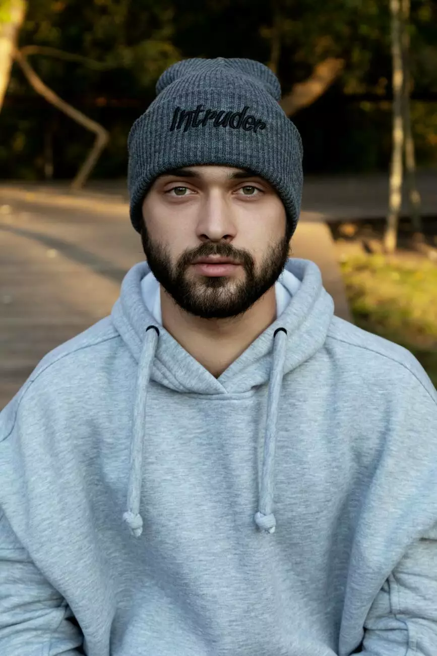 Шапка з додаванням вовни "Intruder" сіра big logo