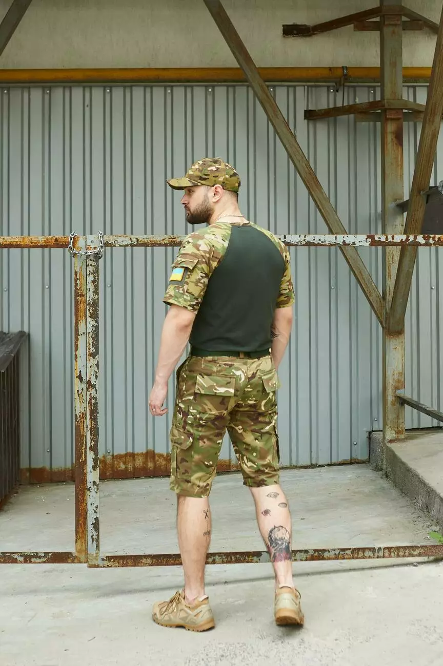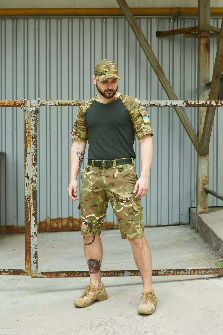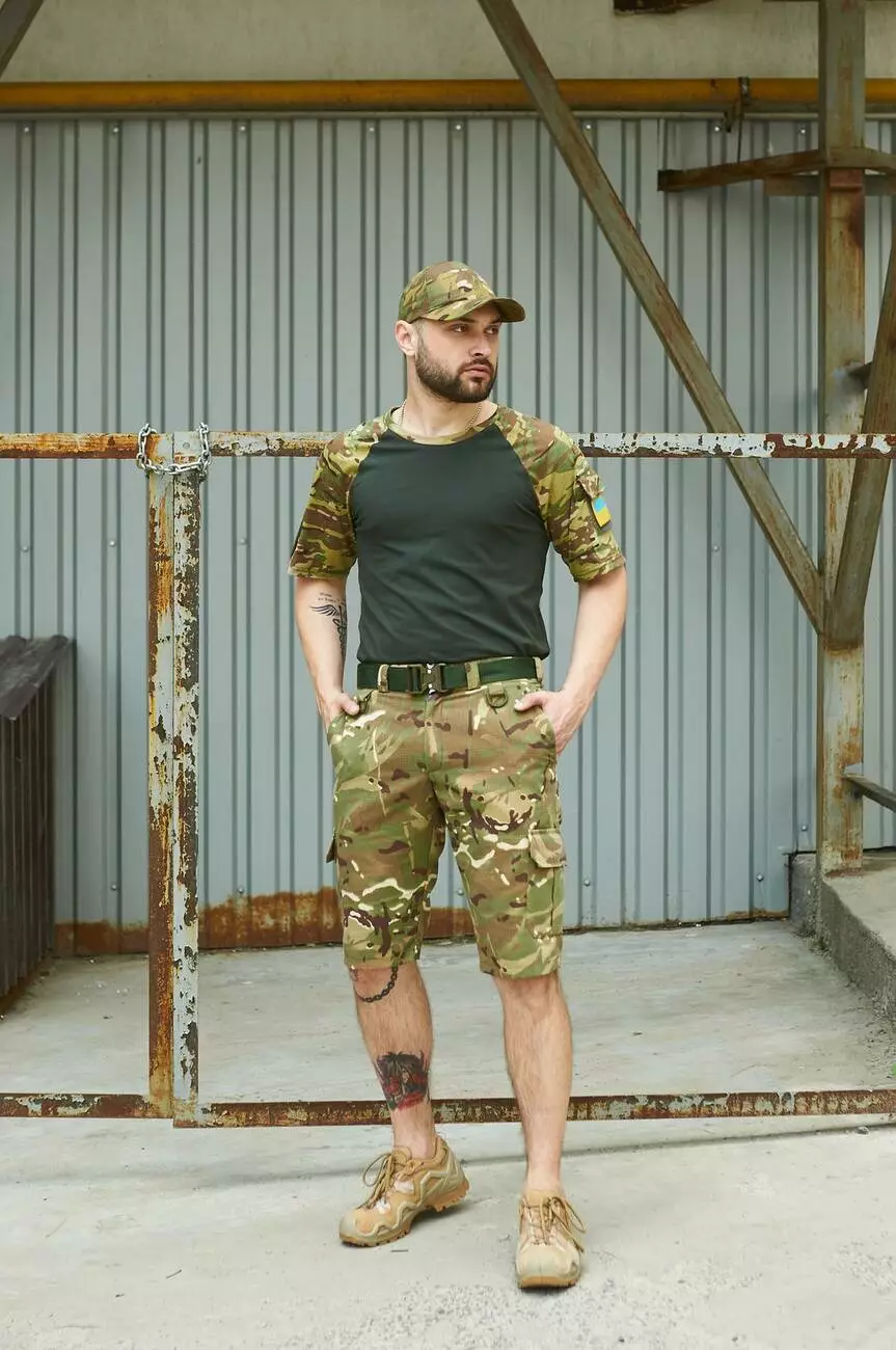 Шорти Aim мультикам + Футболка Sleeve хакі /мультикам + Ремінь хакі + Кепка мультикам