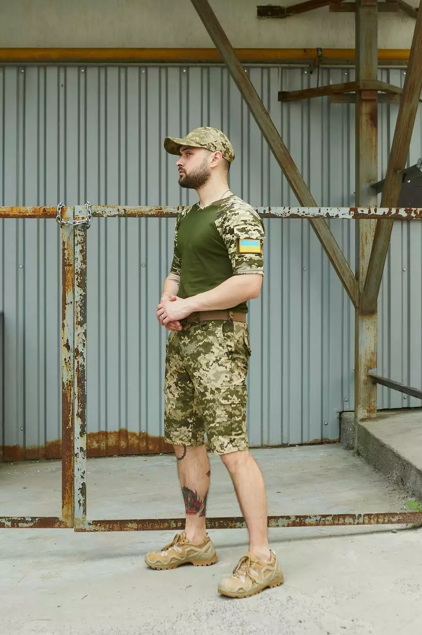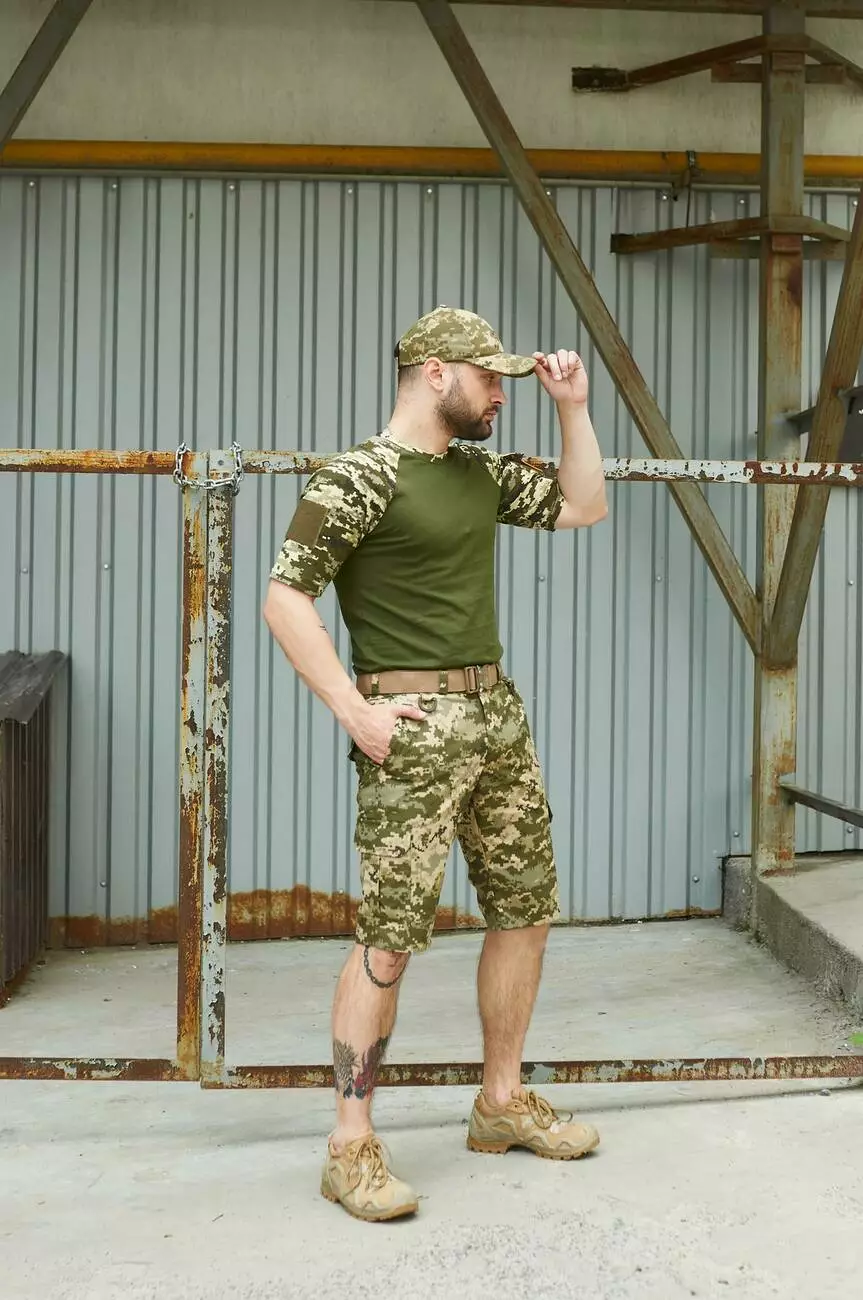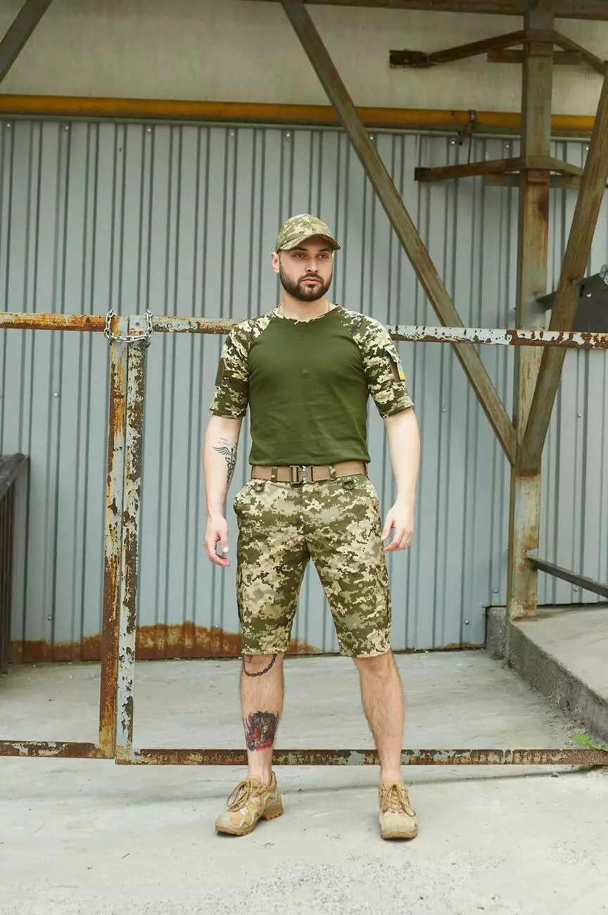 Шорти Aim піксель + Футболка Sleeve хакі /піксель + Ремінь бежевий + Кепка піксель