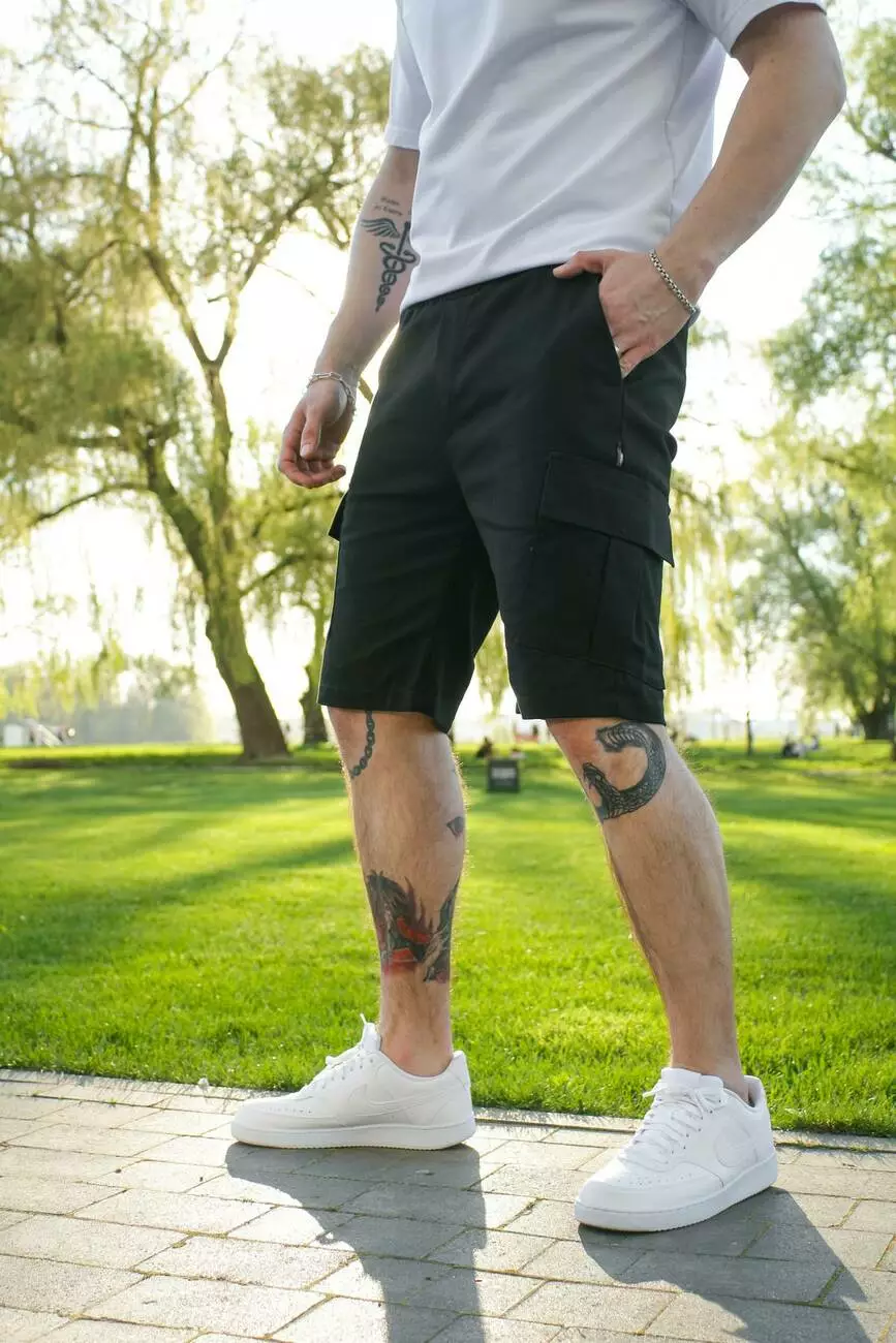 - Дві стандартні кишені, дві накладні кишені з боків з клапаном, одна кишеня ззаду;