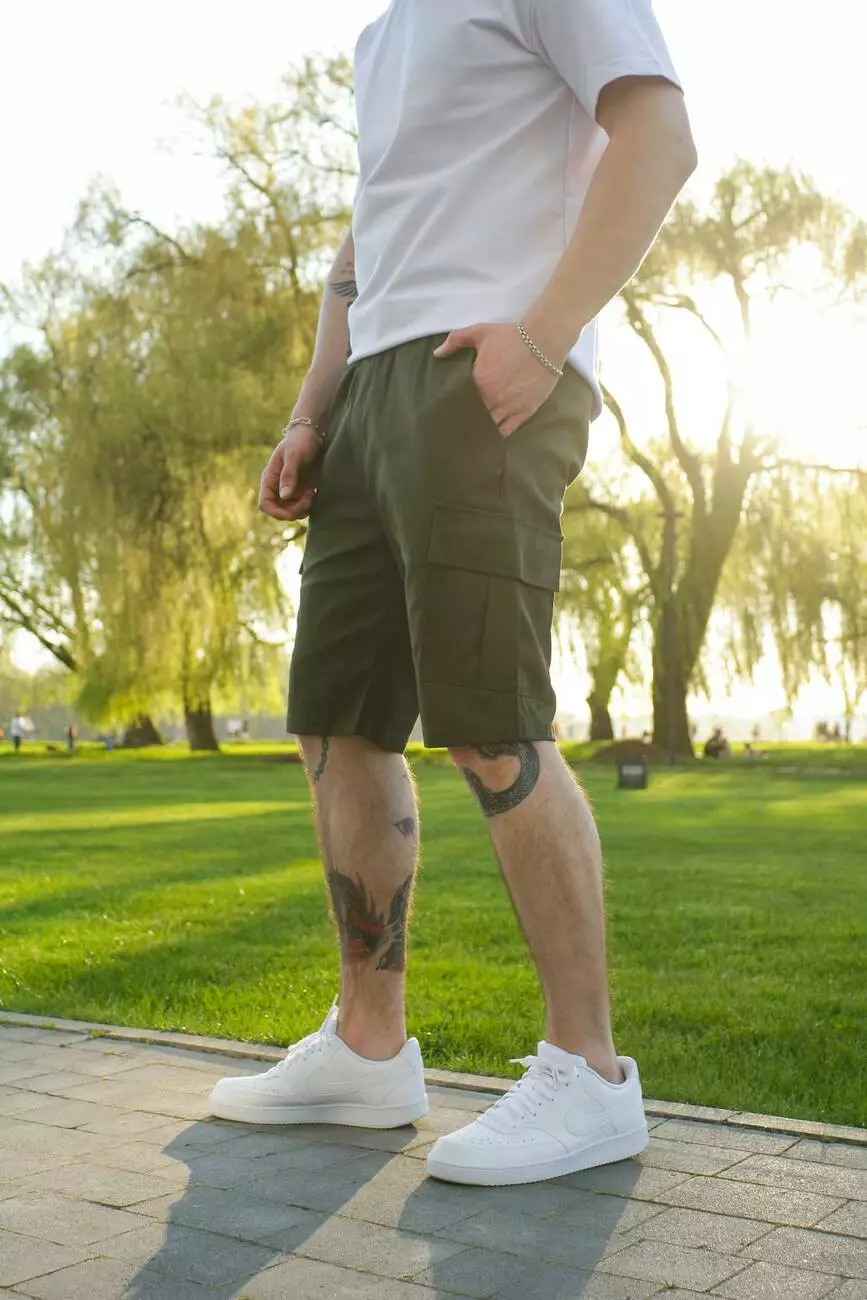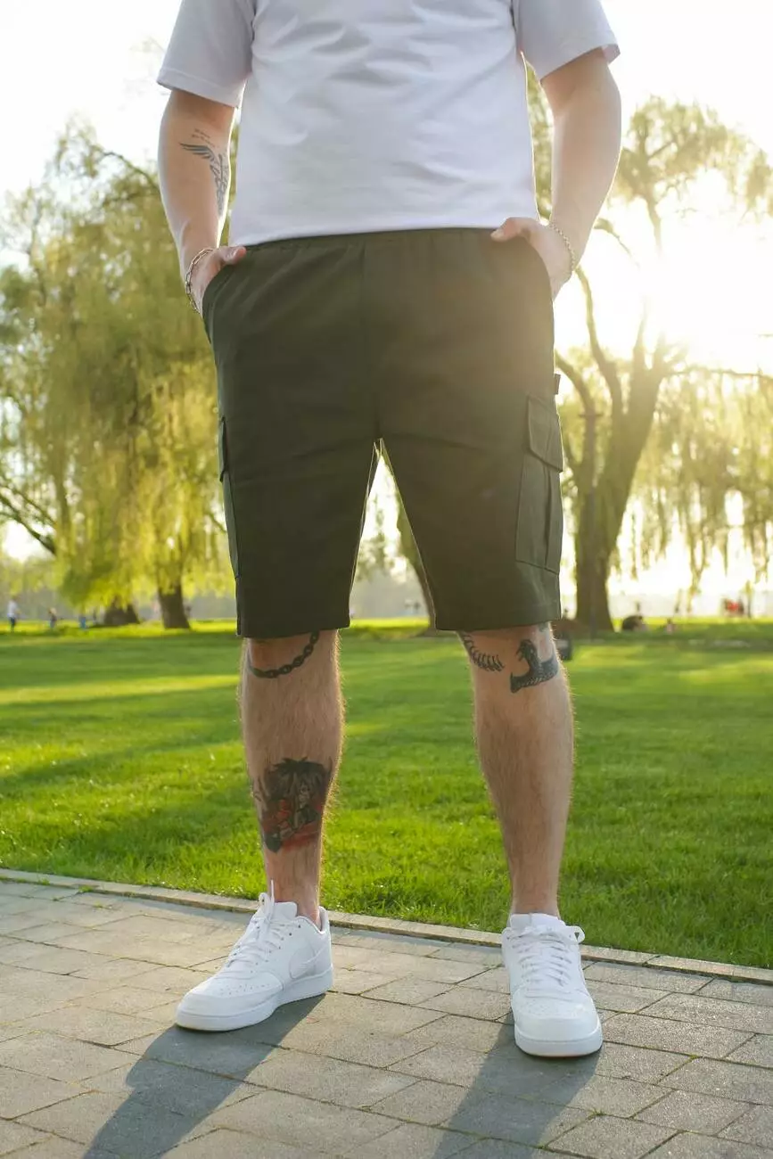 - Дві стандартні кишені, дві накладні кишені з боків з клапаном, одна кишеня ззаду;