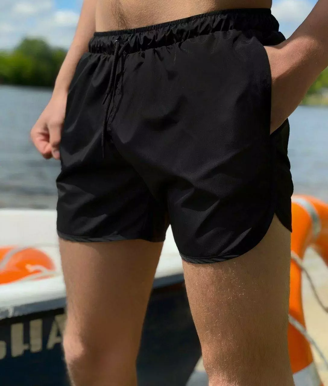 Шорти вільно сидять на тілі, відмінно підійдуть для активних ігор у воді, пляжного футболу, волейболу.