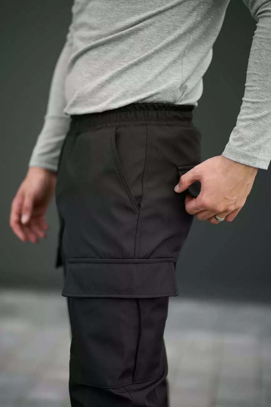 - Внизу штани фіксуються за допомогою еластичних манжет.