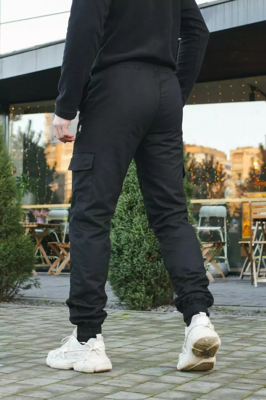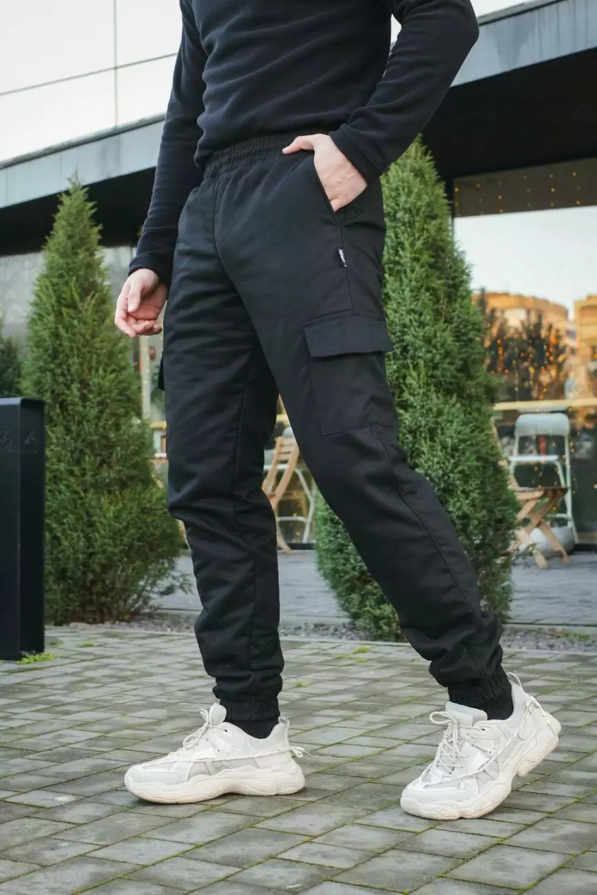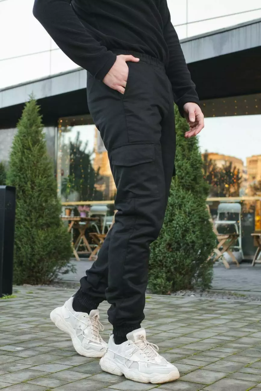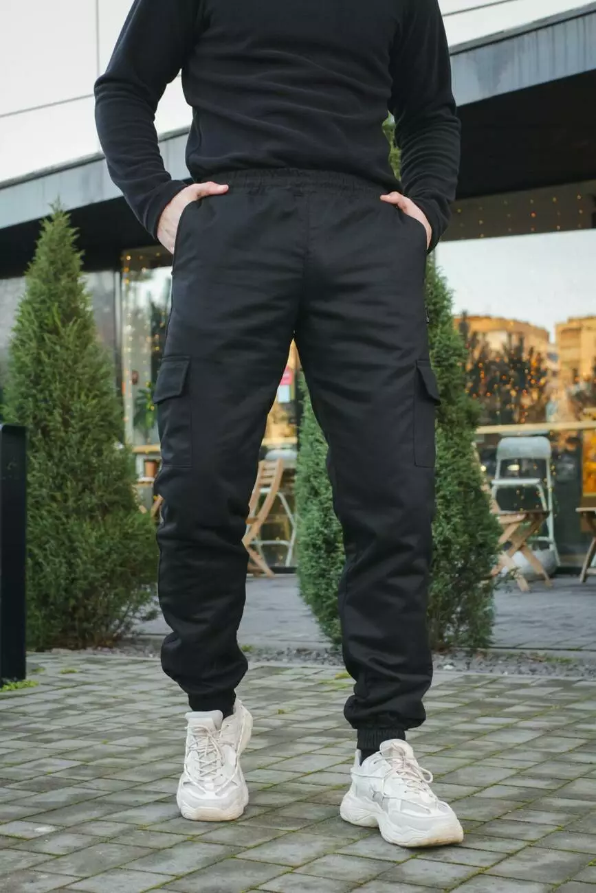 Штани чоловічі карго на флісі Intruder чорні з накладними кишенями