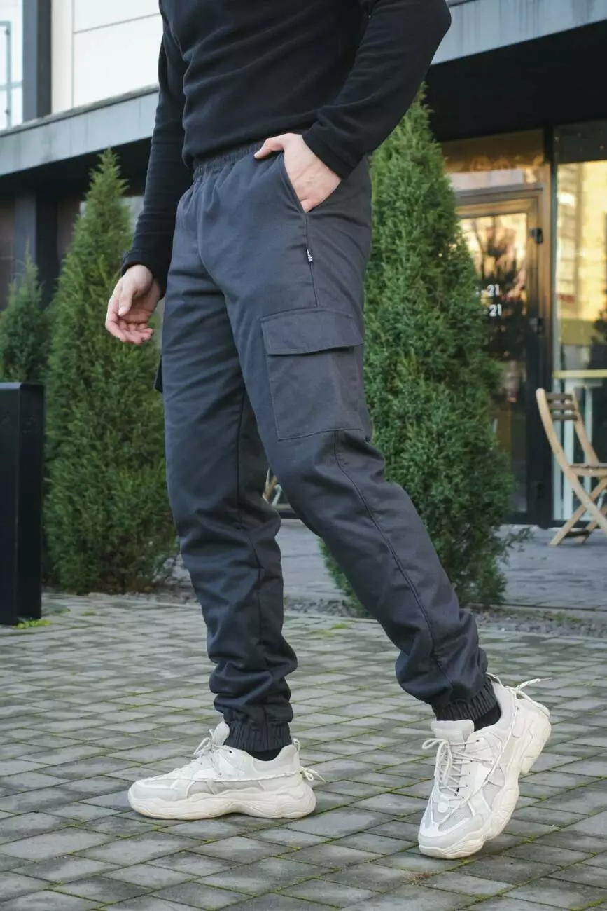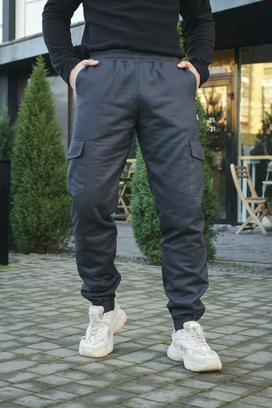 Штани чоловічі карго на флісі Intruder графіт з накладними кишенями