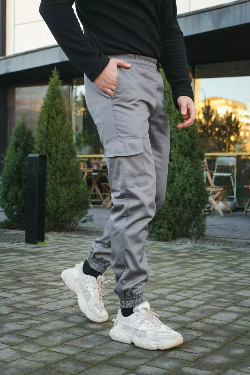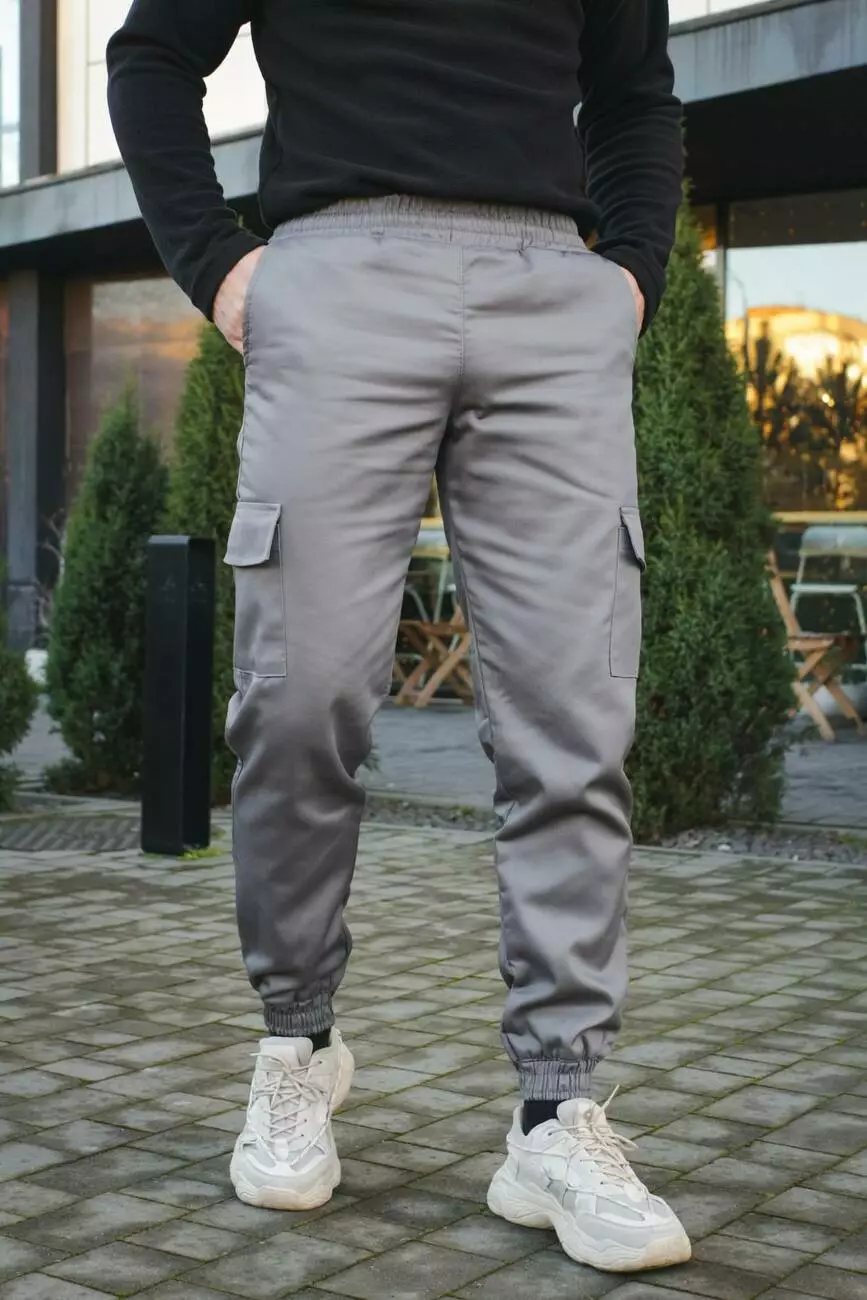 Штани чоловічі карго на флісі Intruder сірі з накладними кишенями