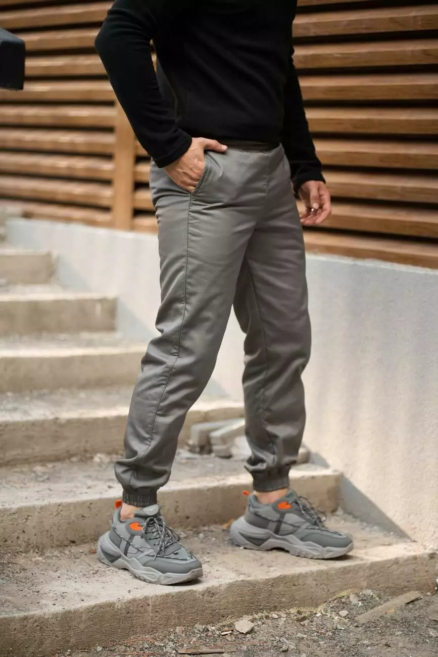 Штани чоловічі карго на флісі сірі