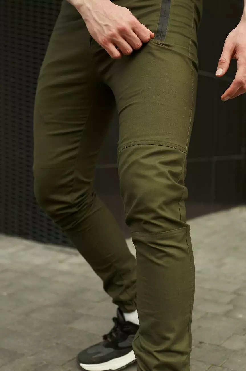 - штани мають звужений фасон. Низ штанини має манжет на резинці;
