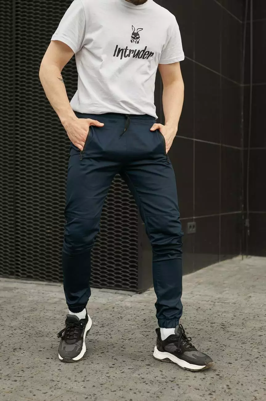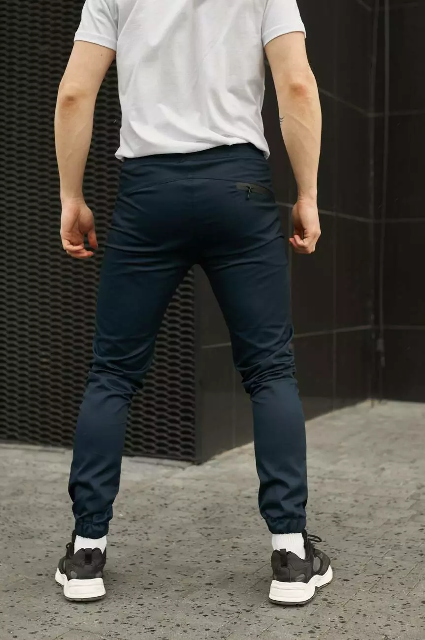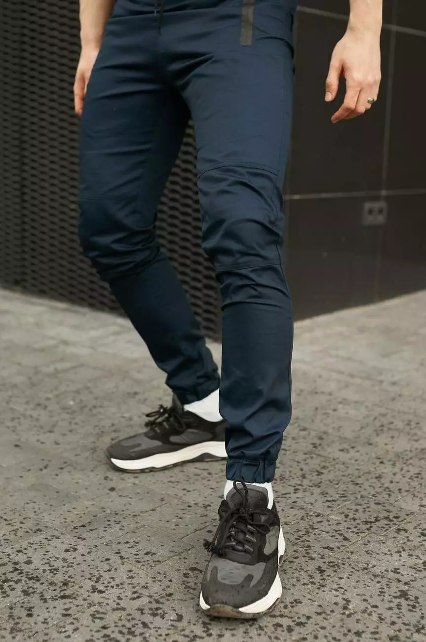 - штани мають звужений фасон. Низ штанини має манжет на резинці;