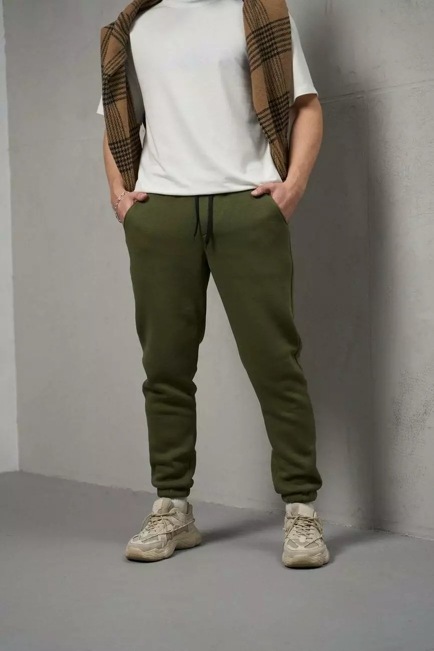 Хакі штани з тринитки на флісі: