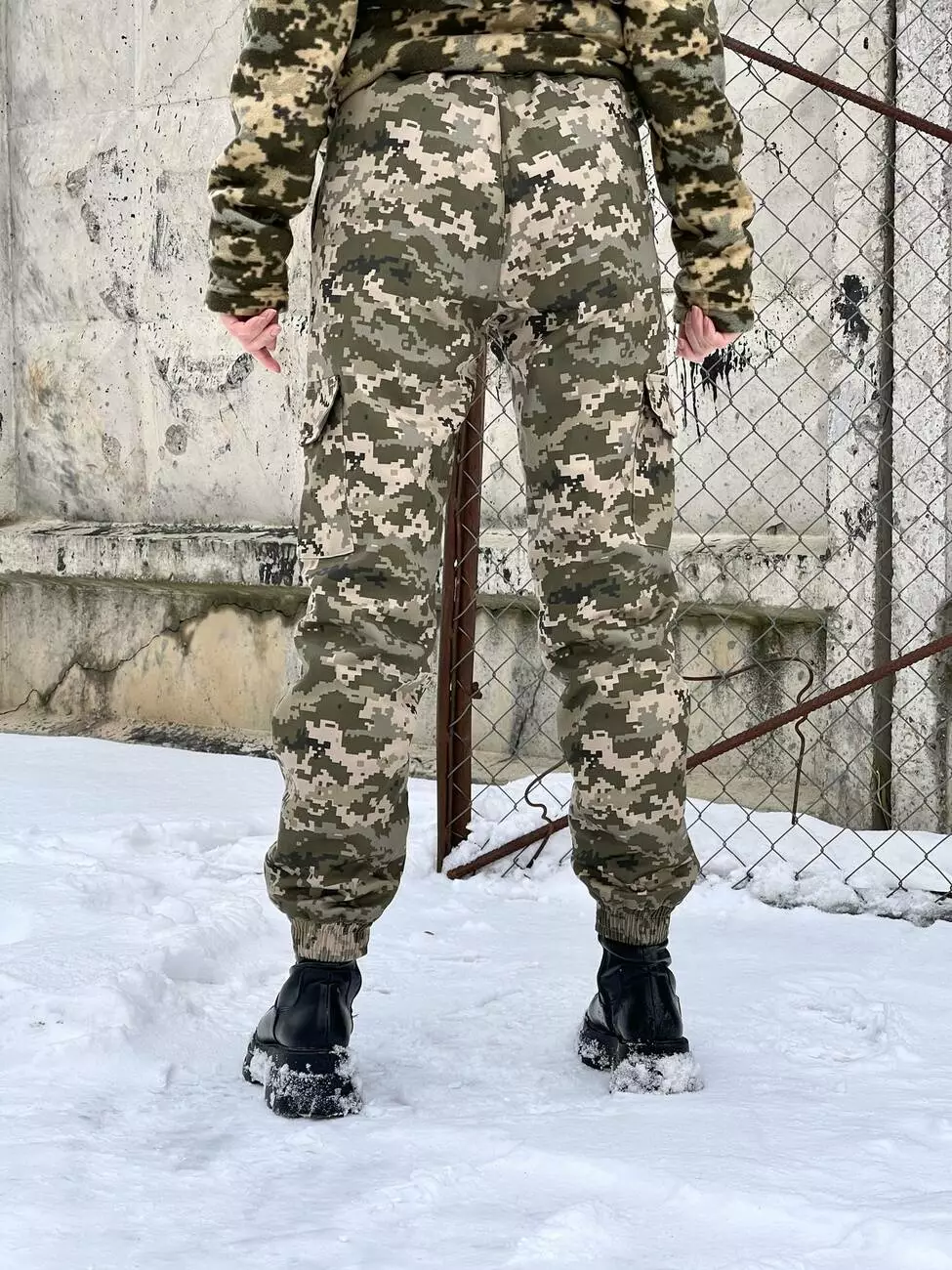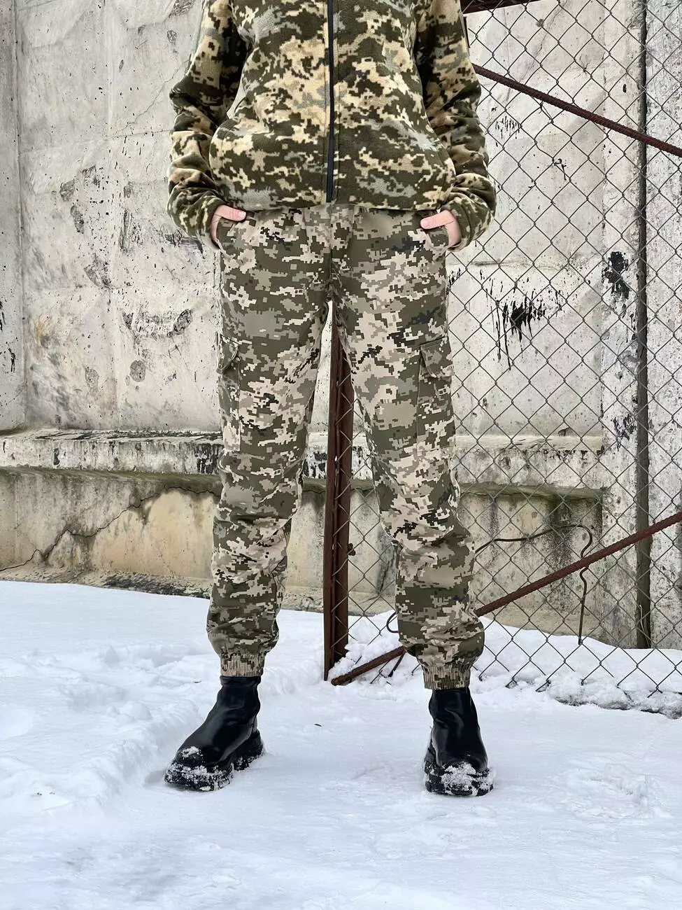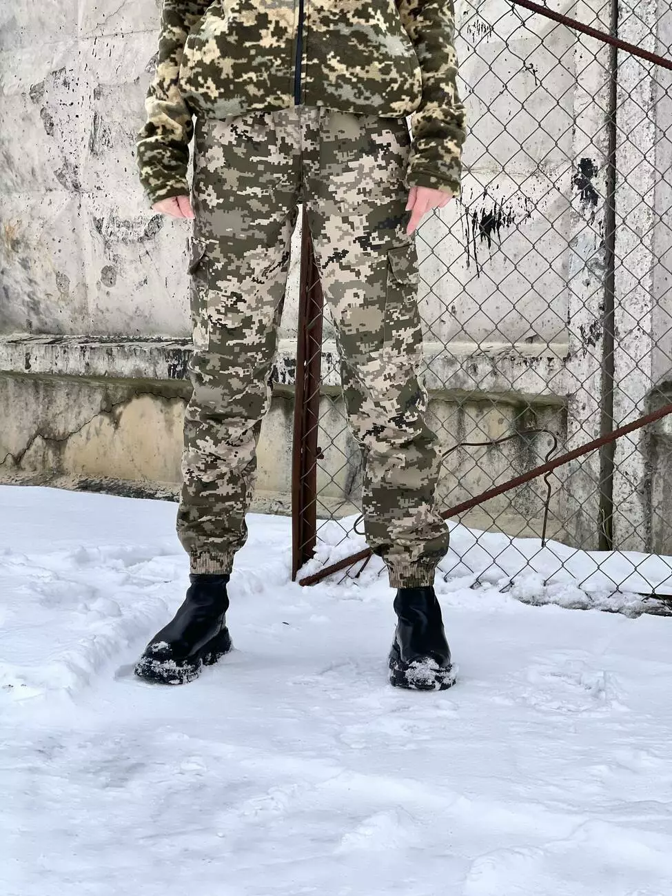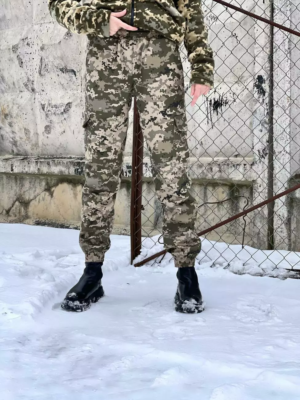 - Внизу штани фіксуються за допомогою еластичних манжетів.