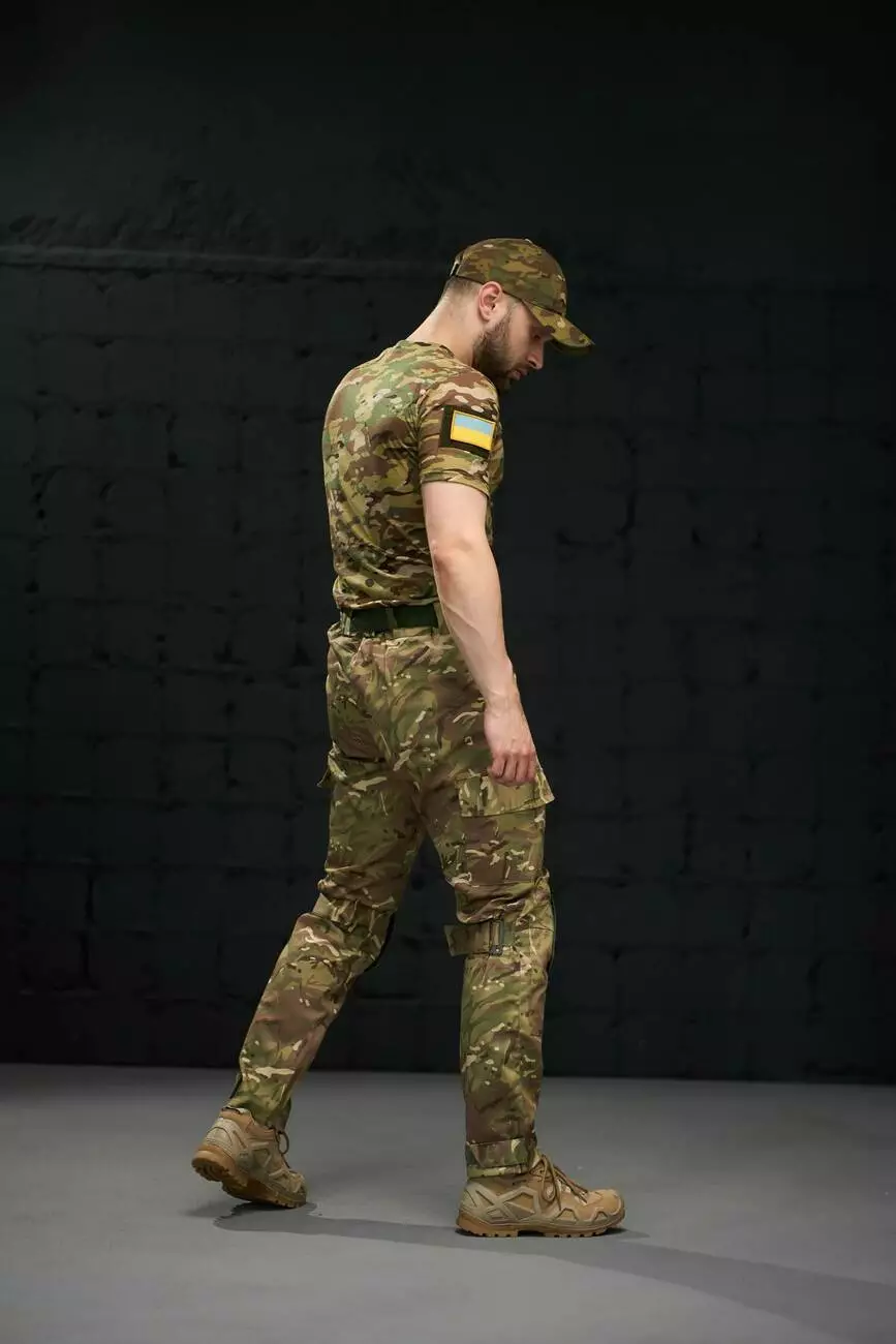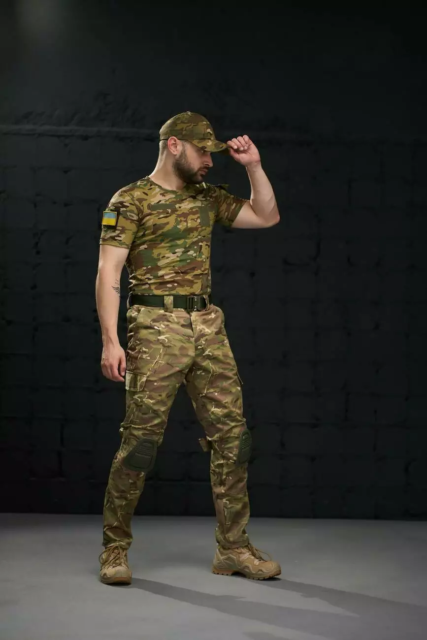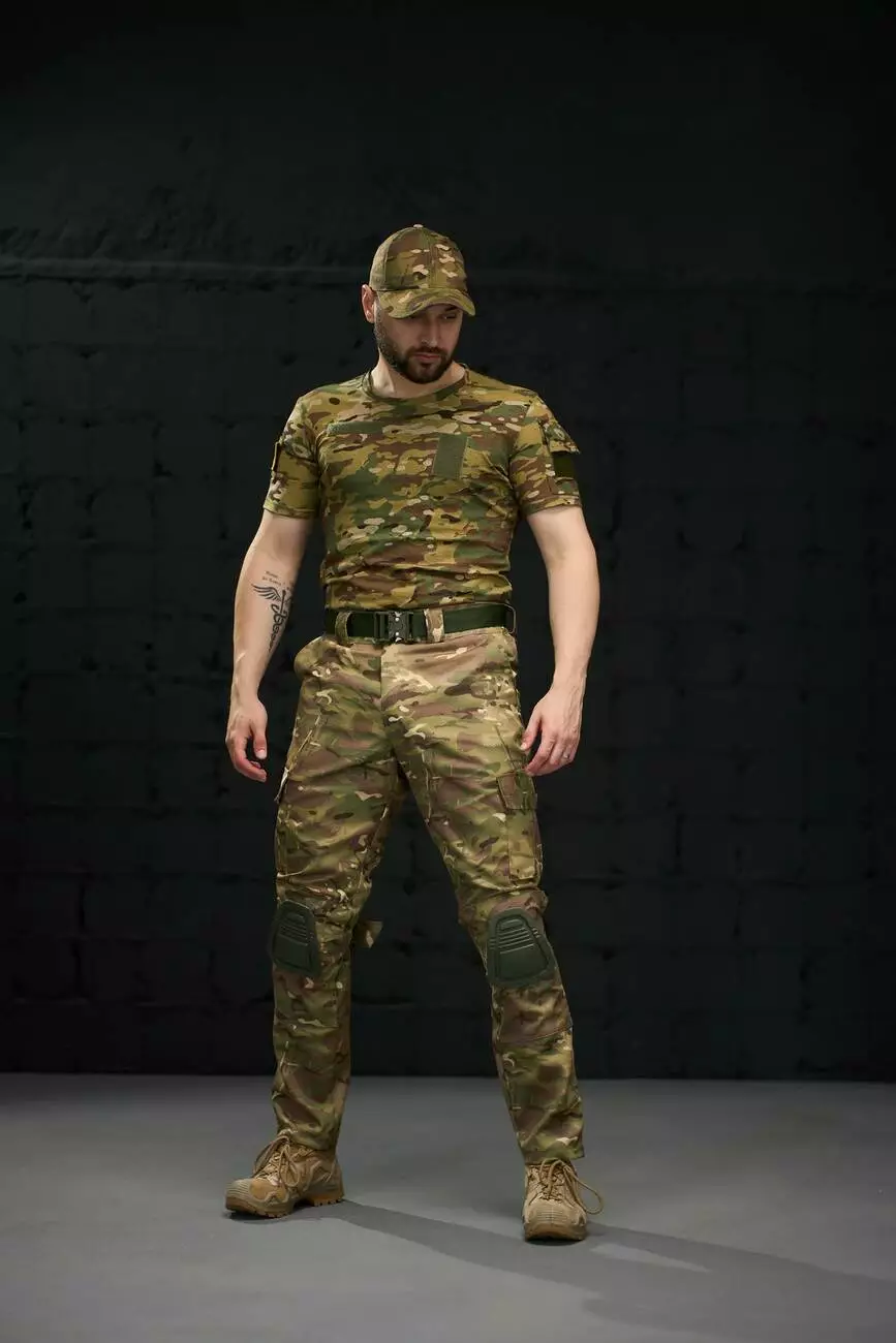 Штани Protect мультикам + Футболка мультикам з липучками на грудях та плечах + Кепка мультикам + Ремінь хакі