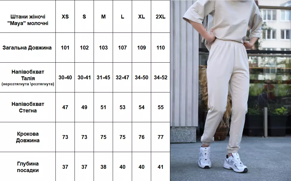 Оснащені широким еластичним поясом і манжетами на резинці, які дозволяють регулювати довжину та посадку.