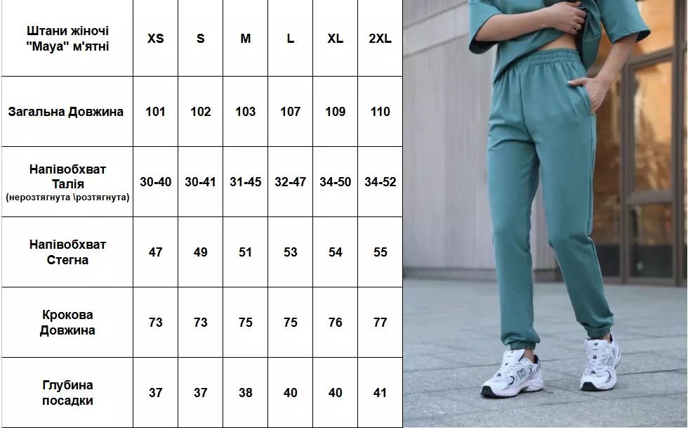 Оснащені широким еластичним поясом і манжетами на резинці, які дозволяють регулювати довжину та посадку.