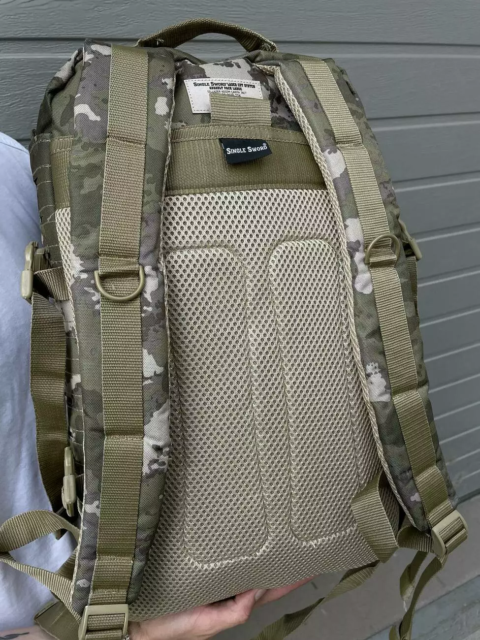 - Сзади имеется большой, почти во всю высоту рюкзака, карман-сетка на липучке;