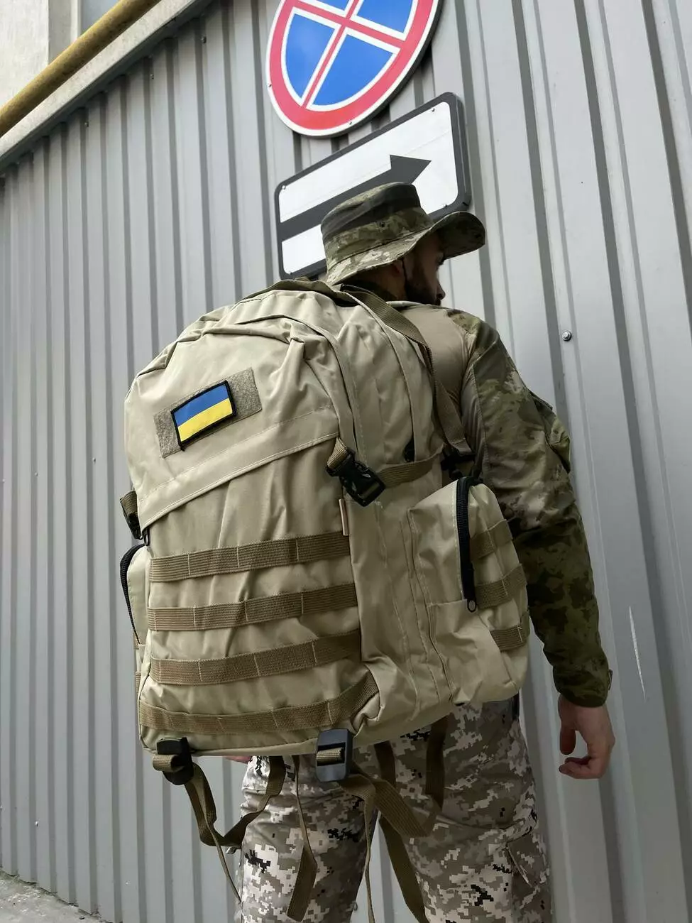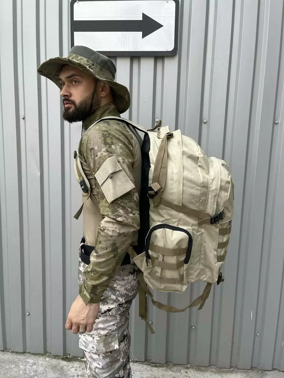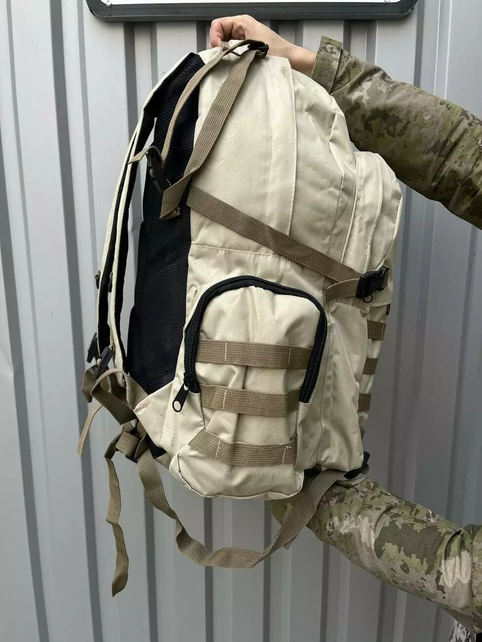 Тактический рюкзак светлый беж косой карман