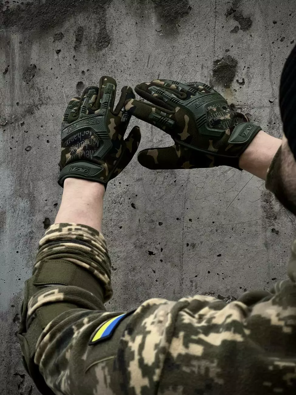 Тактичні рукавички M-pact світло-зелений камуфляж із зеленими накладками