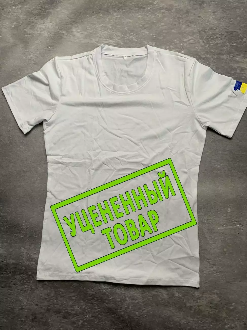 (УЦЕН.) Футболка базовая белая с флагом на плече