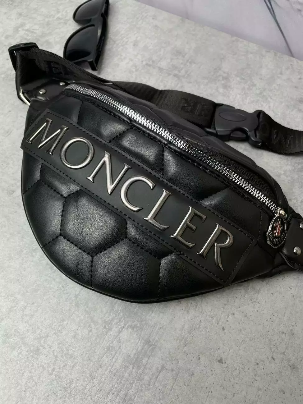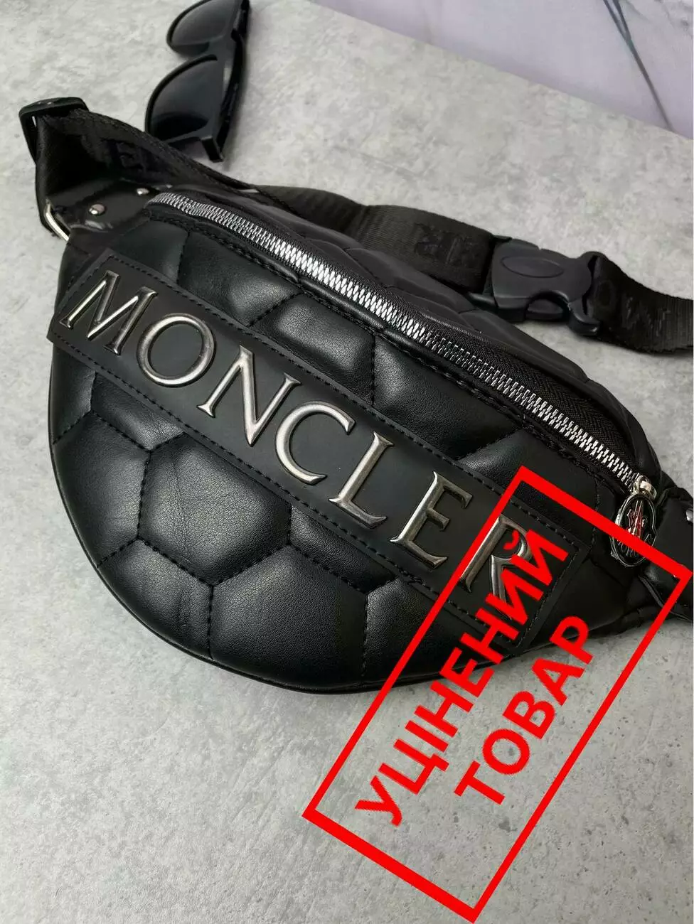 (УЦІН.) Бананка шкіряна Moncler чорна