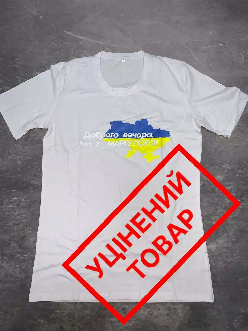 Брак - білі букви на білій футболці + пошкоджена буква M