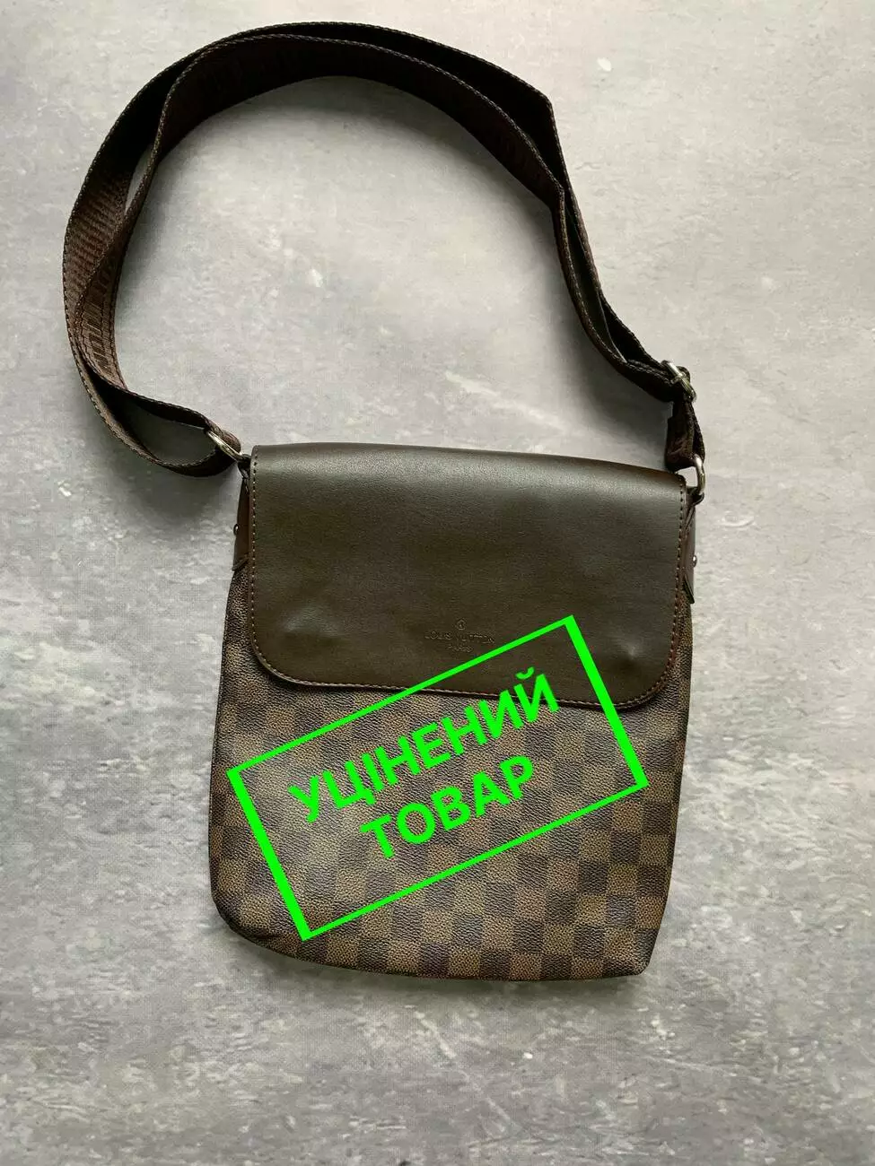 (УЦІН.) Месенджер шкіряний Louis Vuitton коричнева клітка