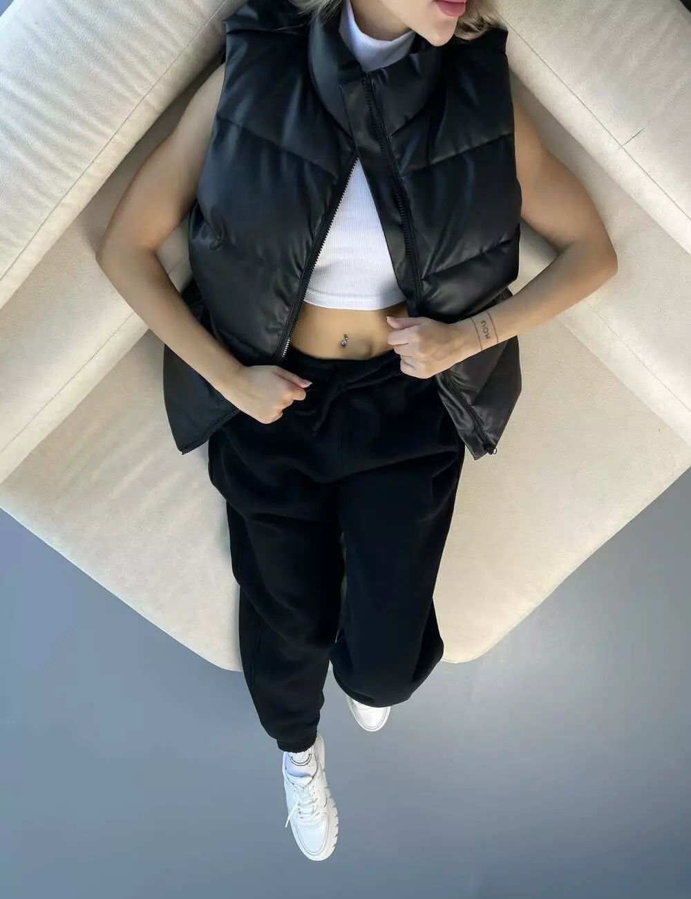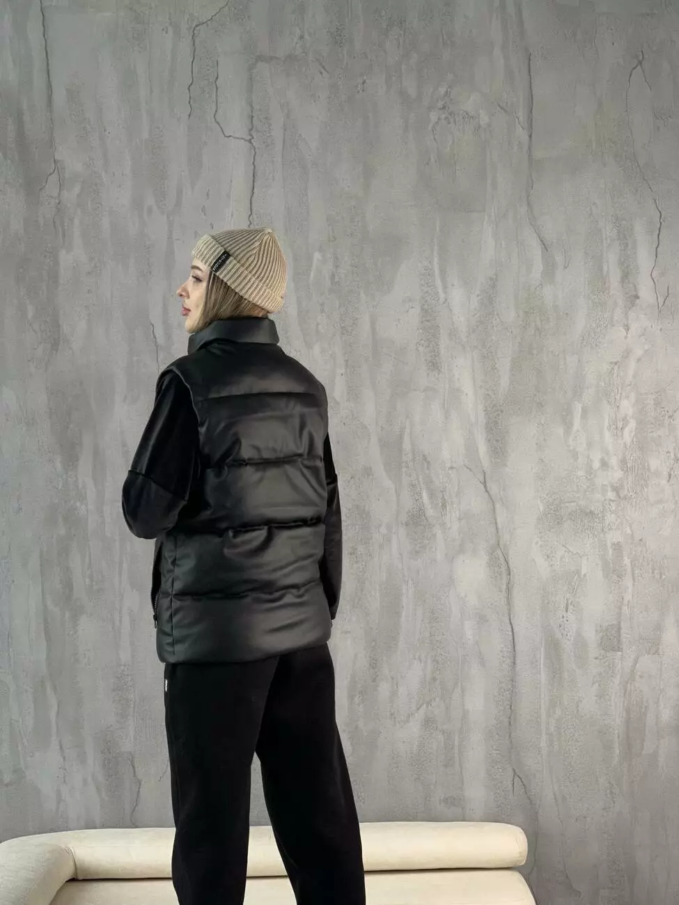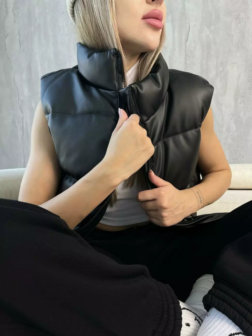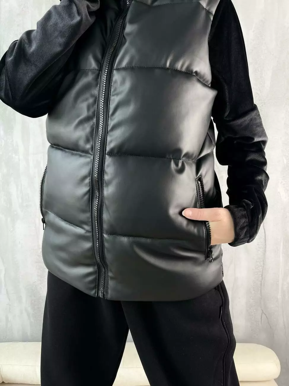 Жилетка з шкірозамінника чорна 'Puller' жіноча