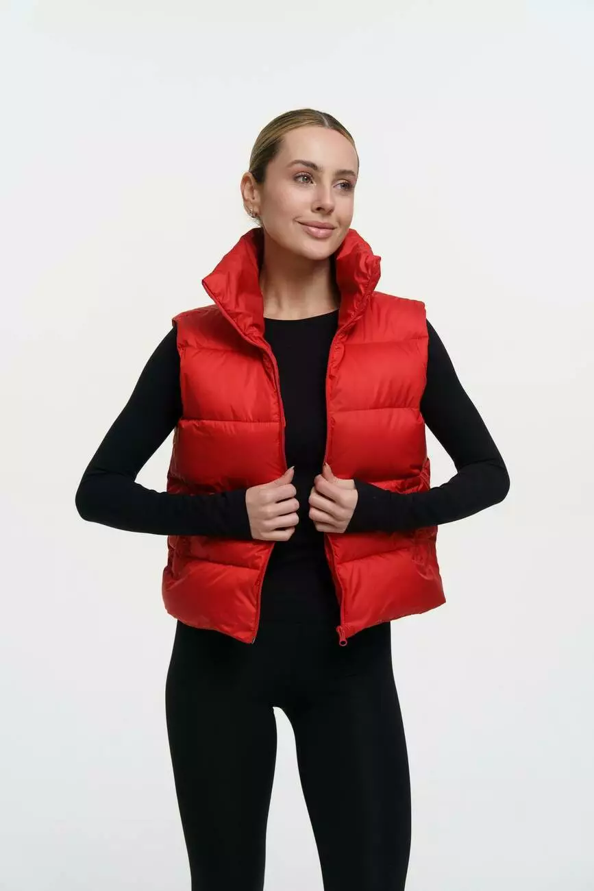 Ця жіноча жилетка — ідеальне поєднання функціональності та модного стилю. Вкорочений фасон підкреслює силует і гармонійно вписується в сучасні образи, роблячи жилетку універсальною для повсякденного носіння.