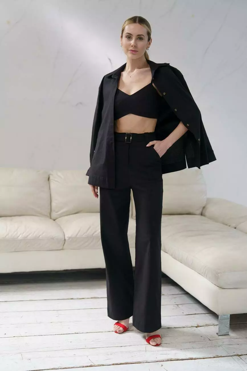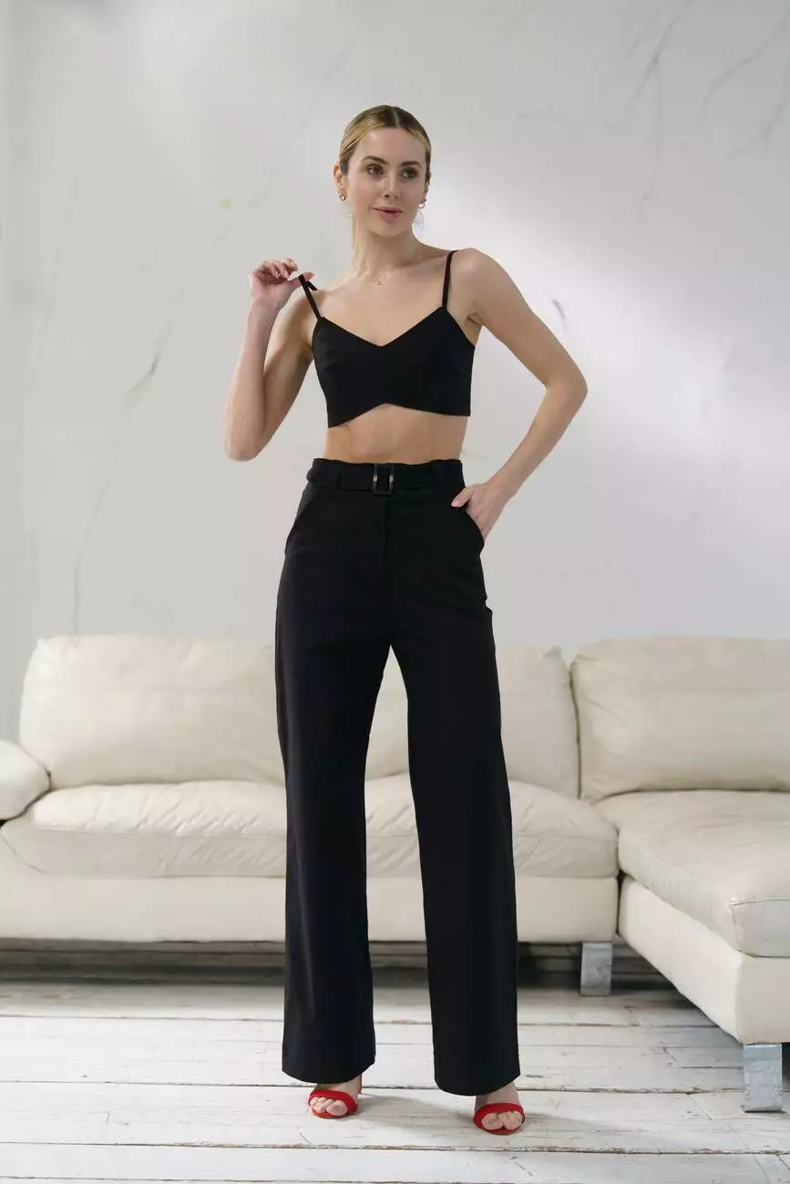 ✔️ Штани з поясом – висока посадка підкреслює талію, а прямий крій додає елегантності. Завдяки поясу ви можете регулювати посадку, забезпечуючи максимальний комфорт.