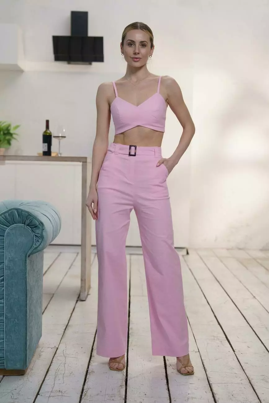 ✔️ Штани з поясом – висока посадка підкреслює талію, а прямий крій додає елегантності. Завдяки поясу ви можете регулювати посадку, забезпечуючи максимальний комфорт.